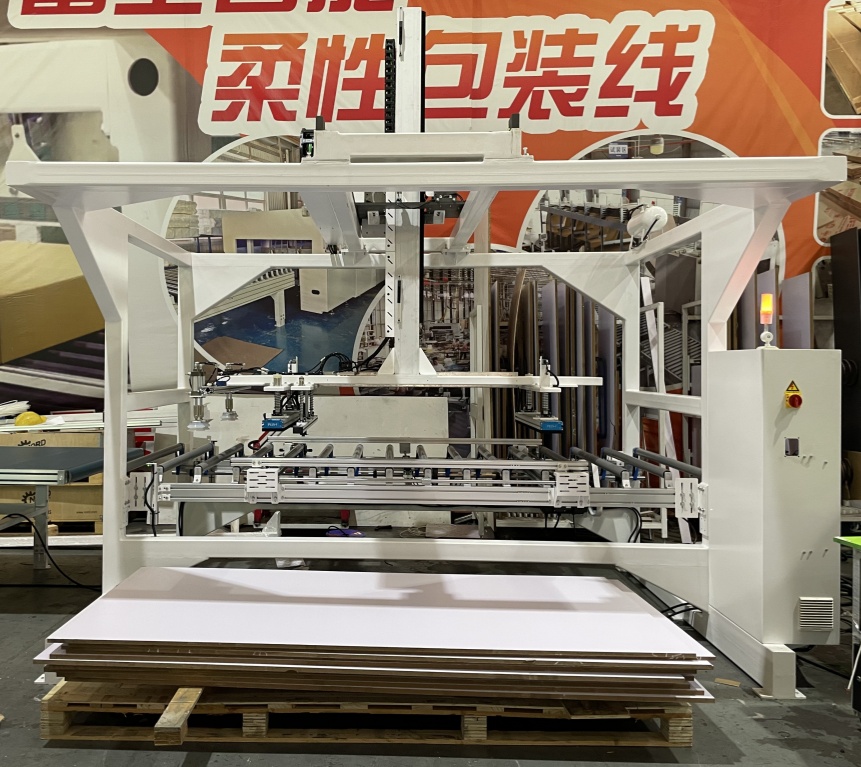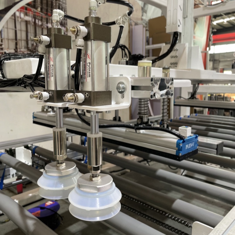 5. Циклічна операція: Підйомна платформа годувальної стійки поступово піднімається, коли захоплення продовжується, щоб підтримувати висоту поверхні. Коли всі панелі на піддоні обробляються,