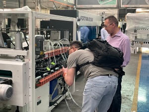 FORTRAN надав великого значення цій транскордонній інспекції та створив спеціальну групу прийому, що складається з технічного директора, керівника виробництва та інспектора зовнішньої торгівлі, щоб налаштувати маршрут інспекції заздалегідь. Делегація замовника спочатку прибула до науково-дослідного центру, відвідала основну технологічну лабораторію інтелектуального обладнання та детально ознайомилася з патентним дизайном обладнання та процесом дослідження та розробки інтелектуальної системи управління. Під час технічної демонстрації інженери FORTRAN використовували інтелектуальну високошвидкісну машину для запаювання коробок на місці, демонструючи її основні функції, такі як «конструкція антиадгезійних валиків з тефлоновим покриттям», «зовнішнє розпилення клею для точного контролю клею» та «автоматичний пристрій для вимірювання висоти коробки». Висока швидкість роботи обладнання — 11 коробок на хвилину, точність запечатування коробки — ±0,1 мм, а також зручний інтерфейс керування сенсорним екраном отримали одностайну схвалення клієнтів.